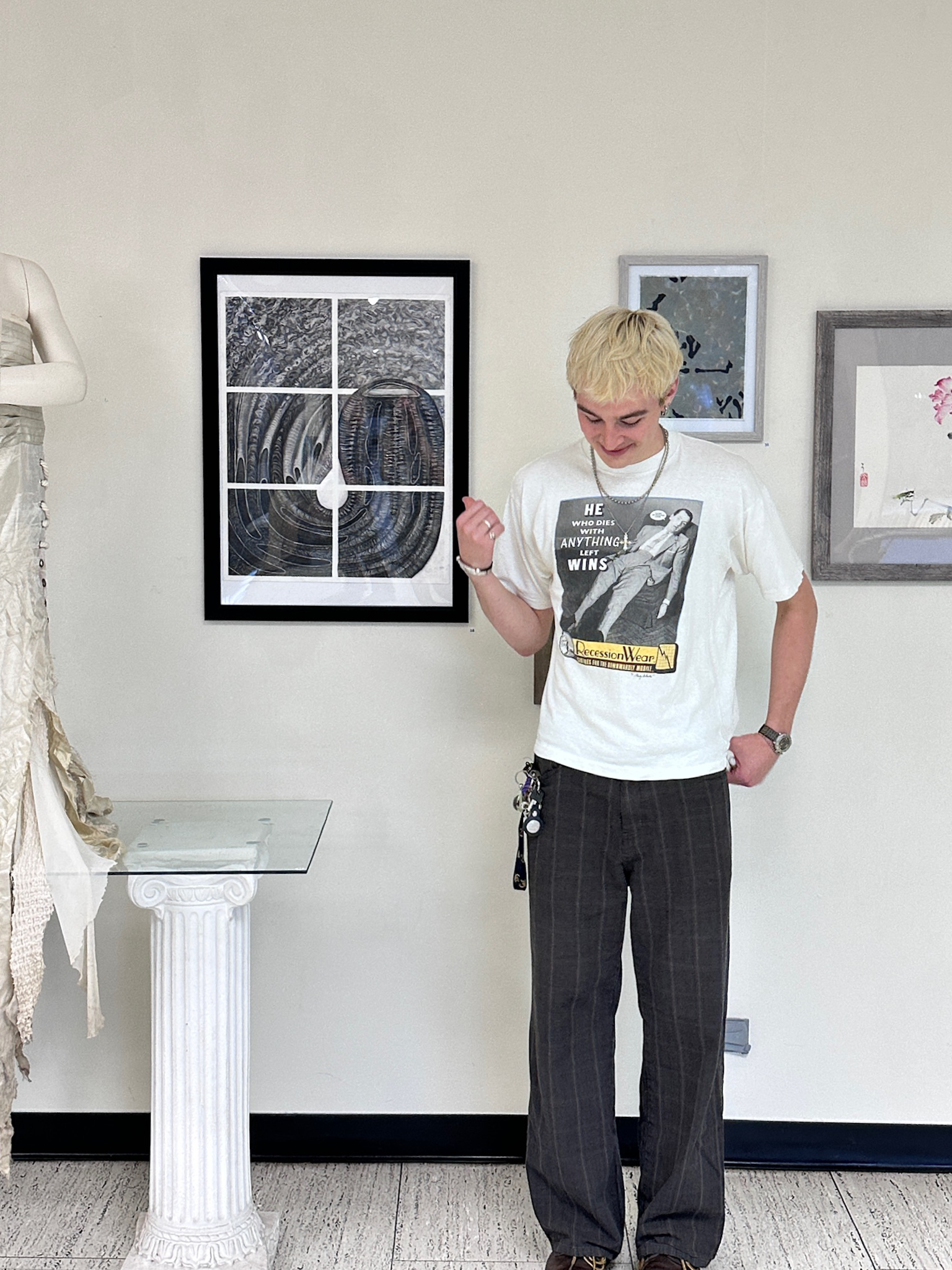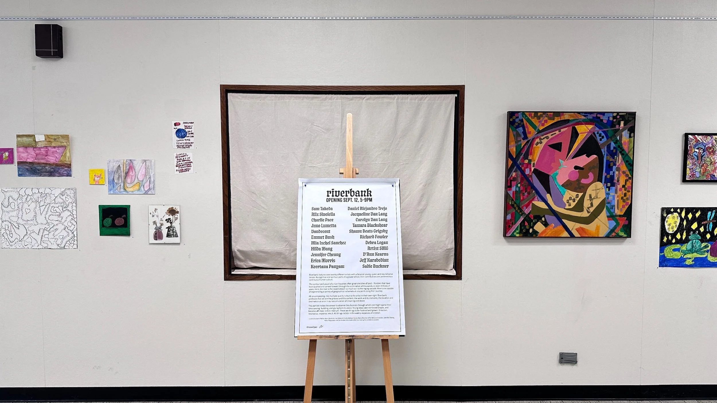Riverbank features over twenty different artists with a focus on young, queer, and neurodiverse lenses. As cognitive and spiritual parts of a greater whole, their contributions are pertinent to a continuous human culture. The contour and vessel of a river traverses often great stretches of land – frontiers that have been pushed and carved forward through the culmination of thousands, or even millions of years. Here, the river is the covert stream so much as it is the raging cascade. Rivers are capable of regenerating a variety of geographical schemata at any point along their journey. All-encompassing, this multiple quality is true to the artist in their own right. Riverbank professes that we are the process and the content; the work and its elements; the location and destination at once in our accumulation of meaning and desire. This exhibit invites the viewer to observe the channels through which one might spend their time carving, building, and giving form to vision. Young ideas take reinforced shapes, and become affirmed in their medium. These are things to be fostered and grown. Direction, resonance, response, result. All things collide in the watery expanses of creation.