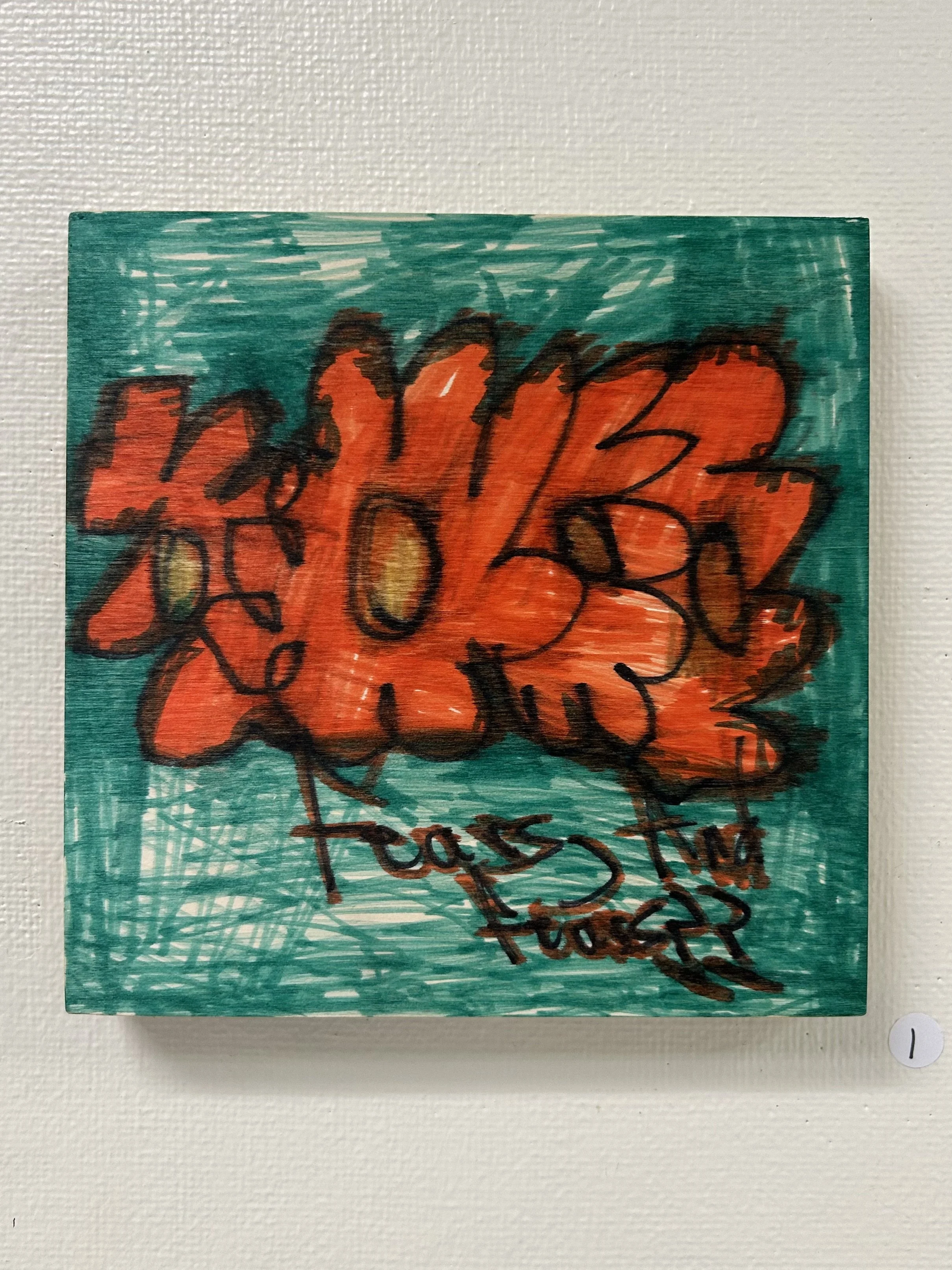 Sadie Buckner, Fears and Fears??, 2025 Alcohol marker on panel, 8” x 8”